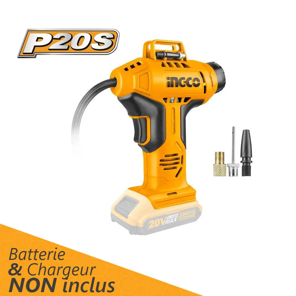 Compresseur D'air Automatique Sans-Fil INGCO CACLI2001, Batterie 20V, Pompe à Air Automatique, Chargeur Et Batterie Non Inclus