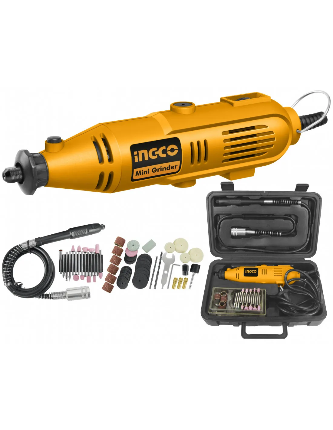 Tension : 220 V-240 V~50/60 Hz Puissance d'entrée : 130 WVitesse à vide : 10 000 à 32 000 tr/min Taille de la pince : 3,2 mm Contrôle de vitesse variable Avec 1 arbre flexible avec 52 accessoires Emballé par BMC