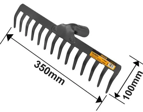Le râteau Ingco, avec sa tête en acier est résistant à l'exposition prolongée au soleil, permet également de desserrer le sol, ainsi que de nettoyer des sols avec des cailloux.