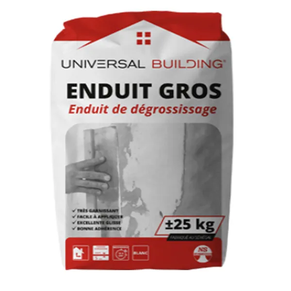 L'Enduit Gros de Universal Building est un enduit en poudre à base de plâtre, carbonate de calcium, résine et divers adjuvants, qui convient à tous les types de travaux intérieurs de dégrossissage de supports inégaux tels que les murs et les plafonds en béton bullé, béton brut, béton cellulaire, plâtre irrégulier ou plafond chauffant.